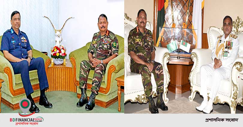 নৌ ও বিমান বাহিনী প্রধানের সাথে বিদায়ী সাক্ষাৎ করেছেন সেনাবাহিনী প্রধান