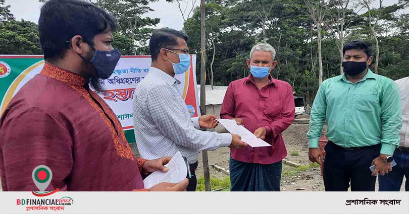 শরণখোলায় ভূমি অধিগ্রহনে ক্ষতিগ্রস্তদের বাড়ি এসে চেক দিলেন জেলা প্রশাসক