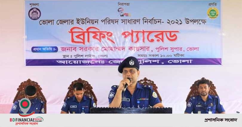 ভোলা জেলার ইউনিয়ন পরিষদ সাধারণ নির্বাচন (১ম ধাপ)-২০২১ উপলক্ষে ব্রিফিং প্যারেড অনুষ্ঠিত
