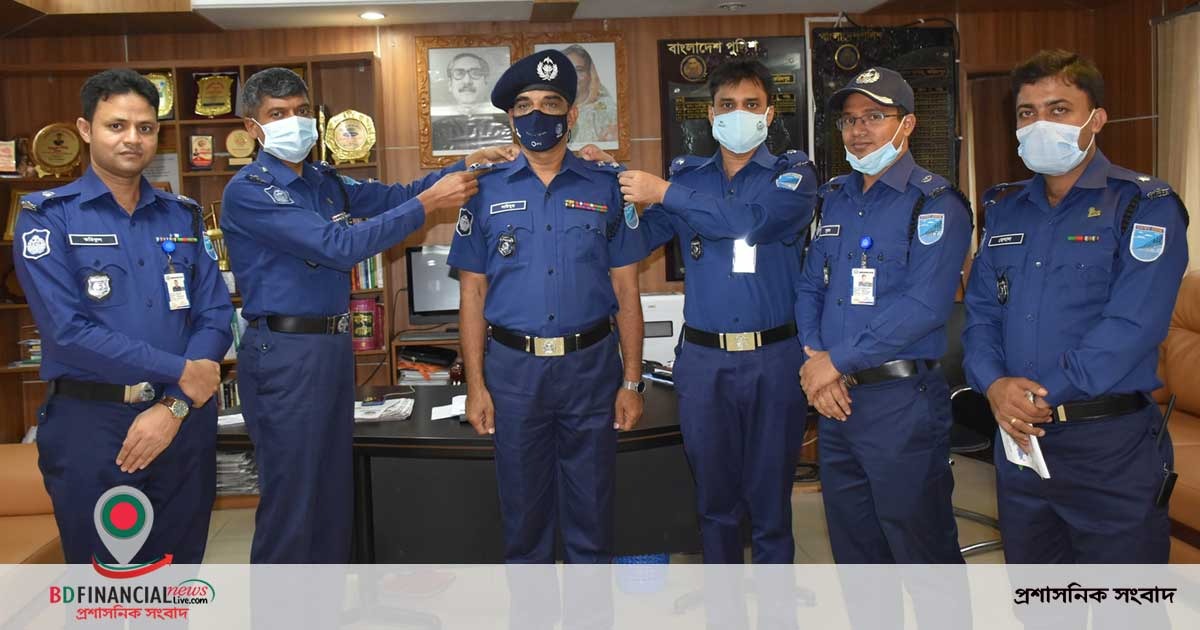 ফরিদপুরে পদোন্নতিপ্রাপ্ত সহকর্মীকে র্যাংক ব্যাজ পরালেন পুলিশ সুপার