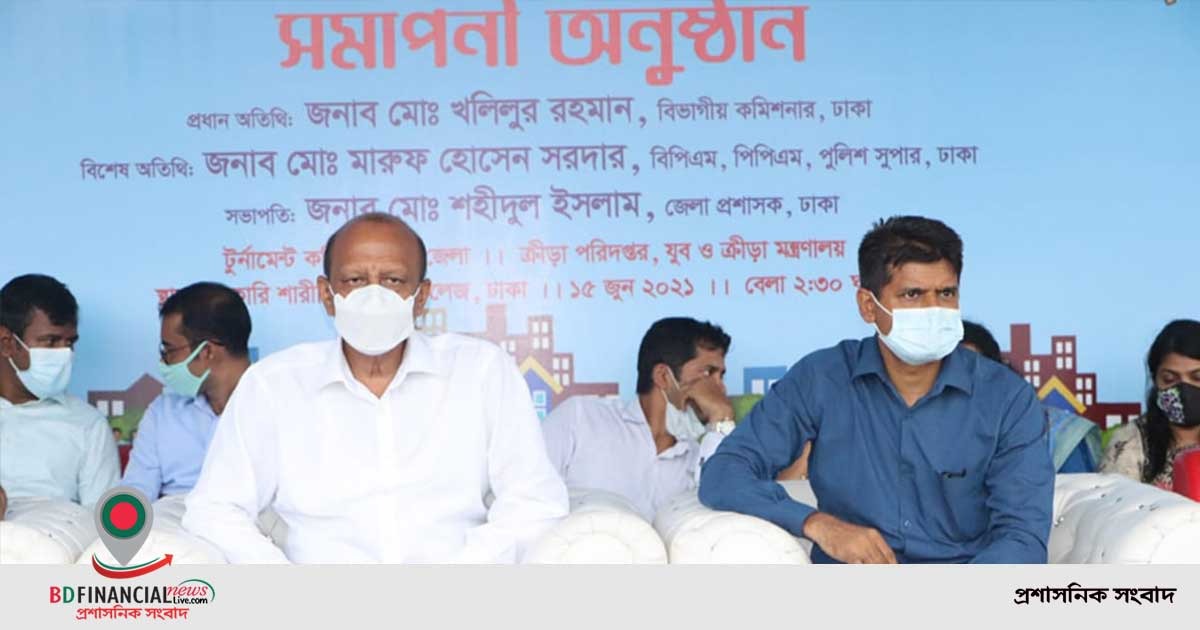 বঙ্গবন্ধু ও বঙ্গমাতা গোল্ডকাপের বিজয়ীদের ট্রফি তুলে দিলেন ঢাকা বিভাগীয় কমিশনার