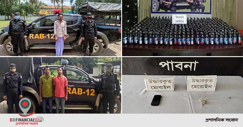 র্যাব-১২ এর পৃথক দুই অভিযানে ফেনসিডিল এবং হেরোইনসহ গ্রেফতার শীর্ষ তিন মাদক কারবারী