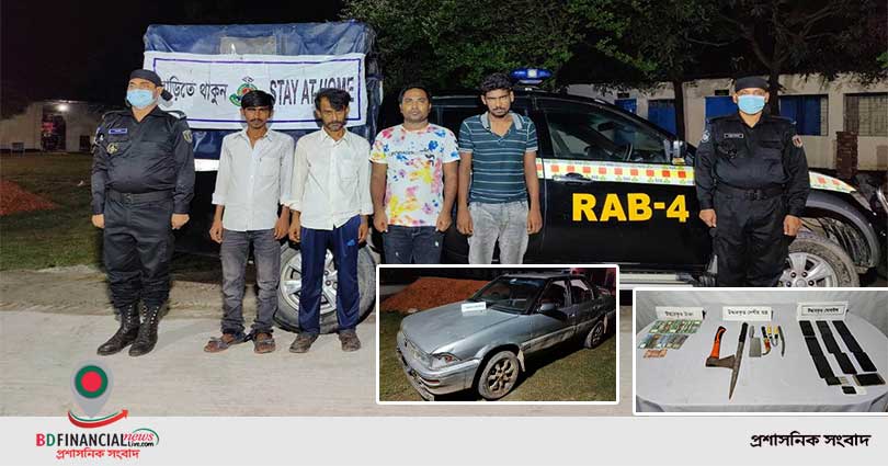 বাইপাইল এলাকা হতে সংঘবদ্ধ ডাকাত দলের ০৪ জন সদস্য’কে গ্রেফতার করেছে র্যাব-৪